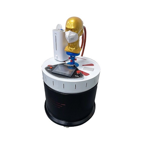 模擬穿戴預處理機,由呼吸模擬器、試驗(yàn)頭模、飽和水(shuǐ)蒸氣發生裝置、溫度控製裝置、 流量計等組成,可控製呼吸模擬器以(yǐ)25次/分鍾,每次2L的呼吸量運行。可控製頭模(mó)嘴巴附近飽和水蒸氣的溫度為(37+2) °。開啟預處理(lǐ)裝置,使呼(hū)吸裝置及飽和水蒸(zhēng)氣(qì)發生裝置(zhì)進(jìn)入工(gōng)作狀態,直到達到穩定。將呼氣器以氣密的方式(shì)佩戴在匹配的試驗頭模上,測(cè)試(shì)20分鍾(zhōng)左右。從呼吸器上取下顆粒物(wù)過濾材料,然後重新(xīn)安裝上(shàng)去,繼(jì)續重複測試10次。